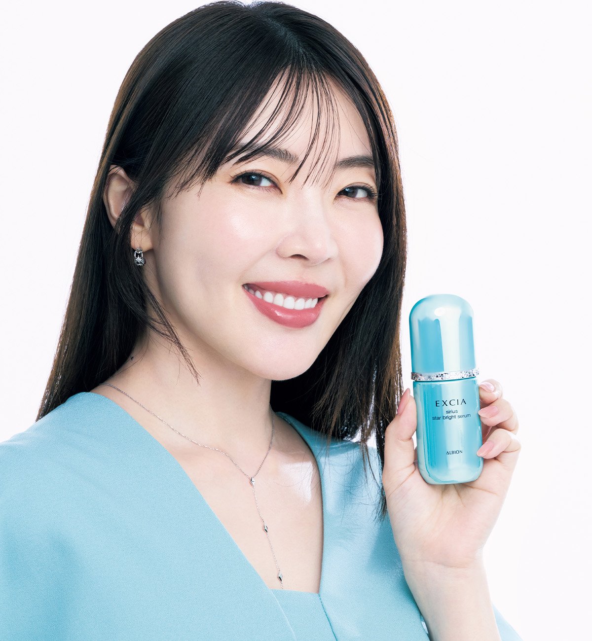 「真に美しい肌って透明感がベースにありながらも、肌そのものにふっくらとしたハリや潤いがみなぎるようなツヤ感がないと成立しないなと思うのです。だからこそ頼りになるのが、アルビオン最高峰のエクシア。美白とエイジングケアを両輪で走らせるアプローチだから、透明美肌を目指すうえで理にかなっているなと感じます。新作のシリウス スターブライト セラムにもさっそく夢中になっていますが、美白有効成分コウジ酸への信頼感はもちろん、そのほかの美容成分※3もうれしい。光※4ダメージと向き合い、なめらかなハリを感じるテクスチャーが本当に推せます!」