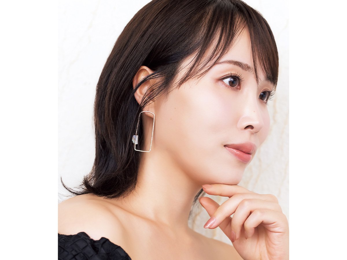 兵藤さん/トップス¥6,490(アンティローザ〈ECREL〉) ピアス¥6,500(ロードス〈ミーナジェムス〉) ブレスレット¥47,300(ロードス〈BORON〉)
