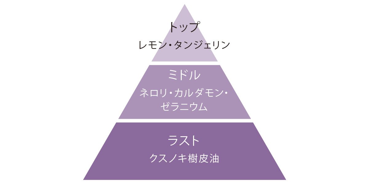 『N organic Vie』の誕生から愛されているリラックスシトラスの香りは、ゼラニウムを中心に精油をブレンド。心地よい香りに包まれて、忙しい日々に心の落ち着きを。