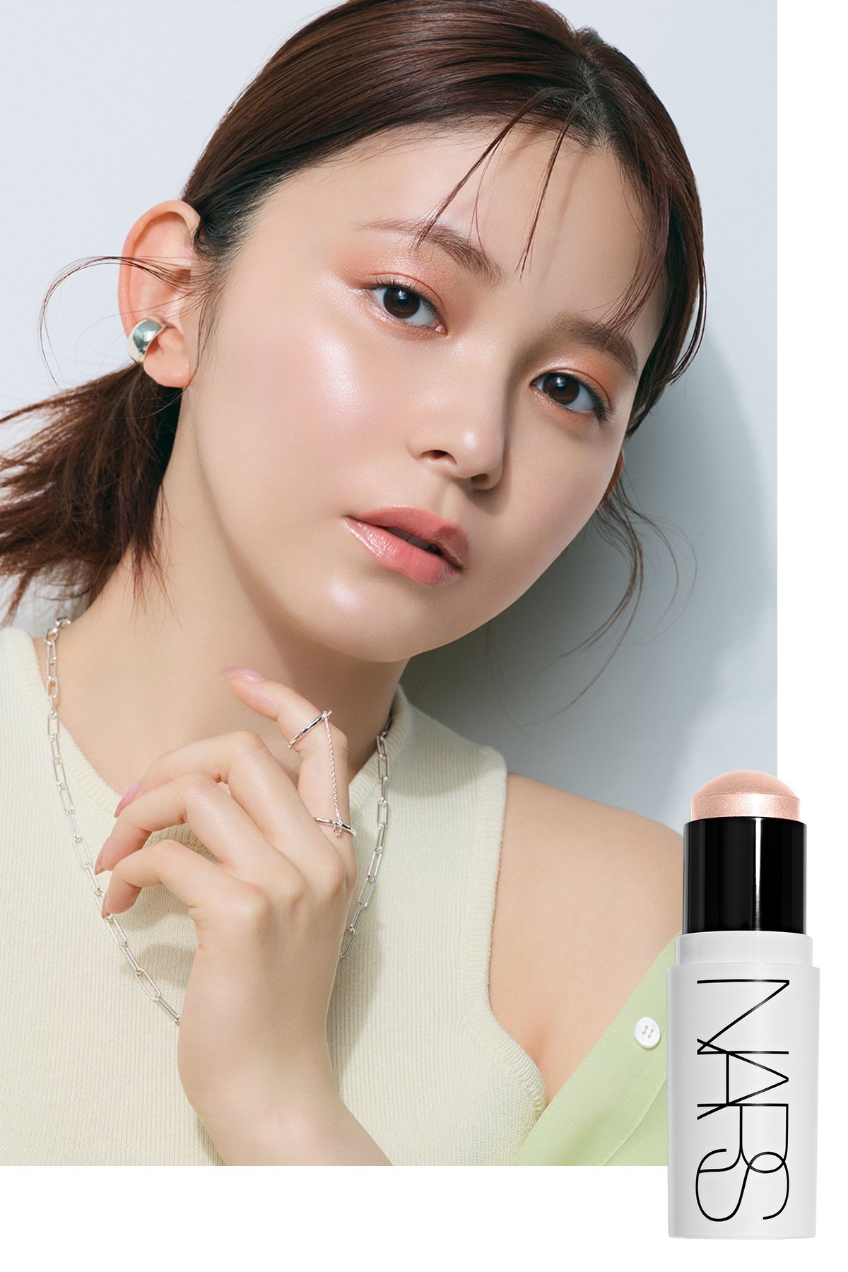 【モデル使用色】NARS ライトリフレクティング ルミナイジングスティック 04231 ¥6,160、NARS ライトリフレクティング ルミナイジングブラッシュ 04858 ¥6,490(5月22日発売)
