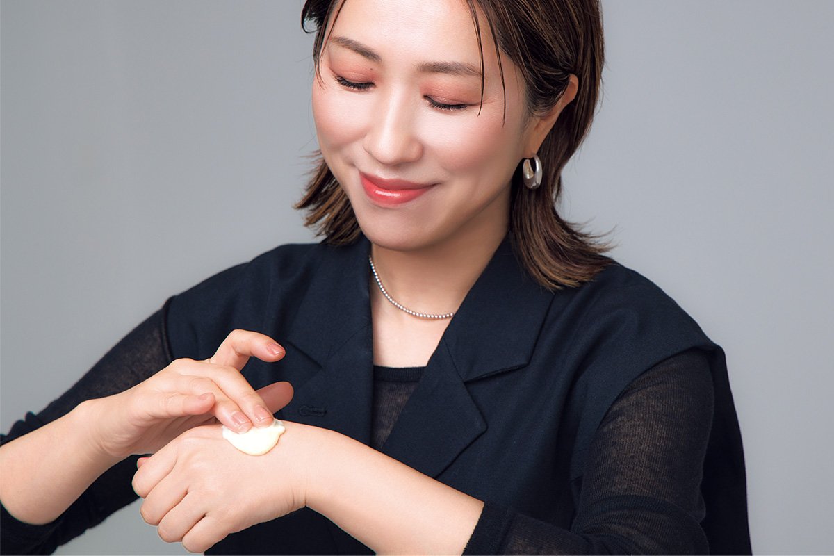 長井 このクレンジング、しっかりメイクもするすると浮かせてくれて、なめらかでしっとりした洗い上がりに驚きました。実は私、肌に負担をかけたくないという気持ちから落とすことを控えていた時期があったんです。そうしたら肌の表面がゴワついて、くすんでしまって。クレンジングを見直すことで改善できたのですが、しっかり落とすことは大事だなと実感しています。