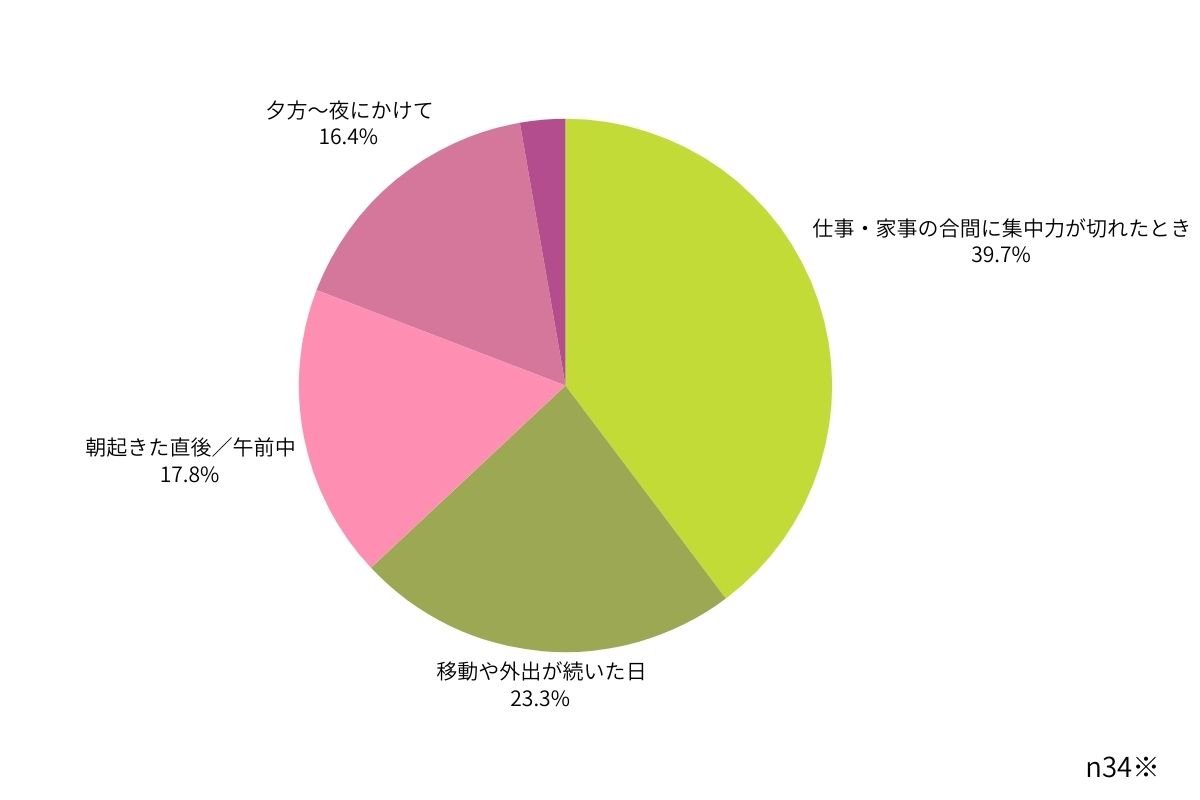 1位は「仕事・家事の合間」、2位は「移動や外出が続いたとき」、3位は「朝の立ち上がり」。忙しい毎日の中で、効率よくコンディションを整えたいと考える人が多いことが判明!