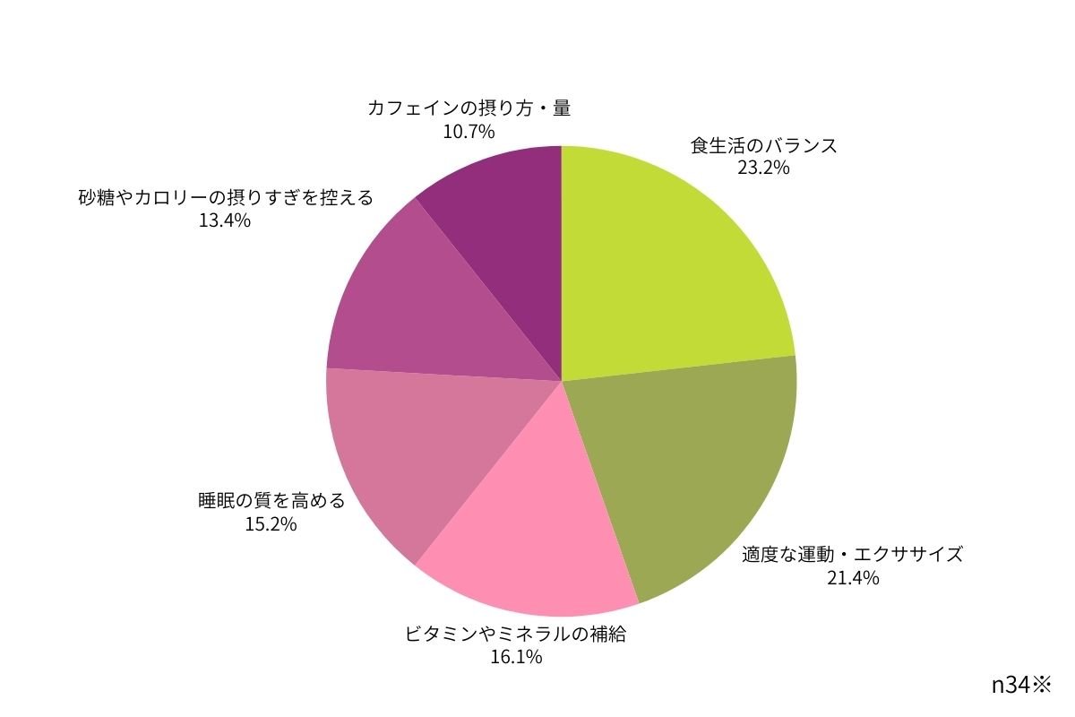 「食生活の見直し」「運動・エクササイズ」「ビタミン・ミネラルの補給」など、日常の中で“摂るもの”の質にこだわる美的クラブが多数派という結果に。