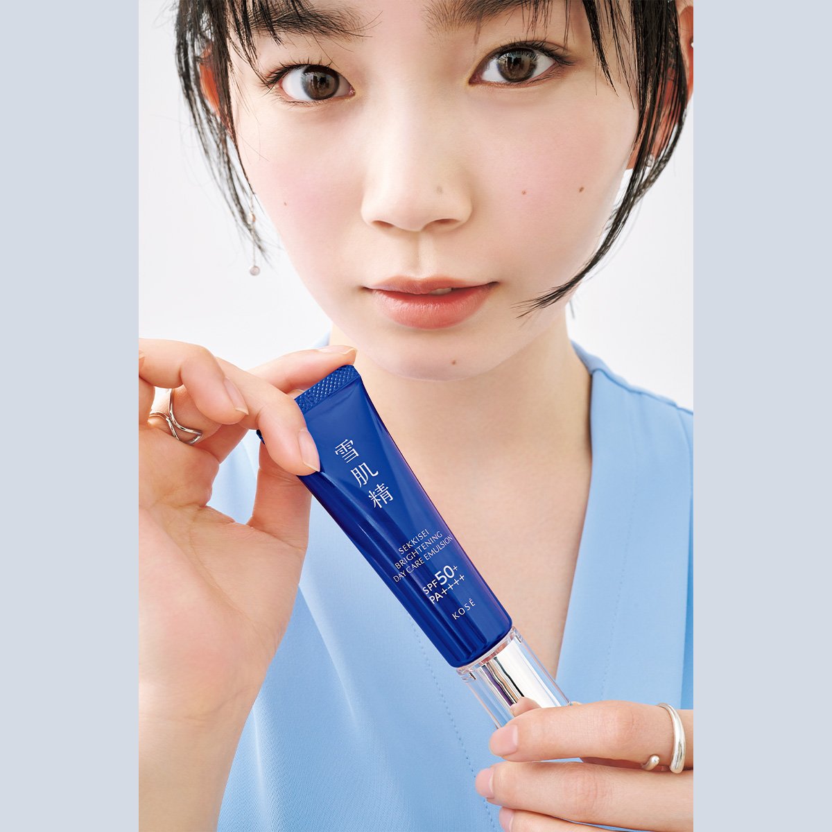 “日やけをすると肌が赤くなりやすいので、日やけ止めは毎日の必需品。熱がこもりやすい肌でもあるので、日やけをしたときはすぐ冷やすことを習慣にしています。「薬用雪肌精 ブライトニング デイケア アドバンス」は、みずみずしく心地いいテクスチャーと、乳液のようなしっとり感がお気に入り。塗り直しもしやすく、ロケのときにも心強い存在になっています”
