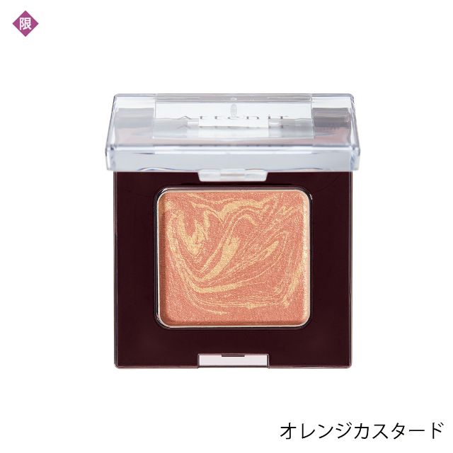 ピタッと目元に密着する濃淡2色のマーブル状アイカラー。大人のくすみがちな目元を明るく整えながら、立体感も演出。