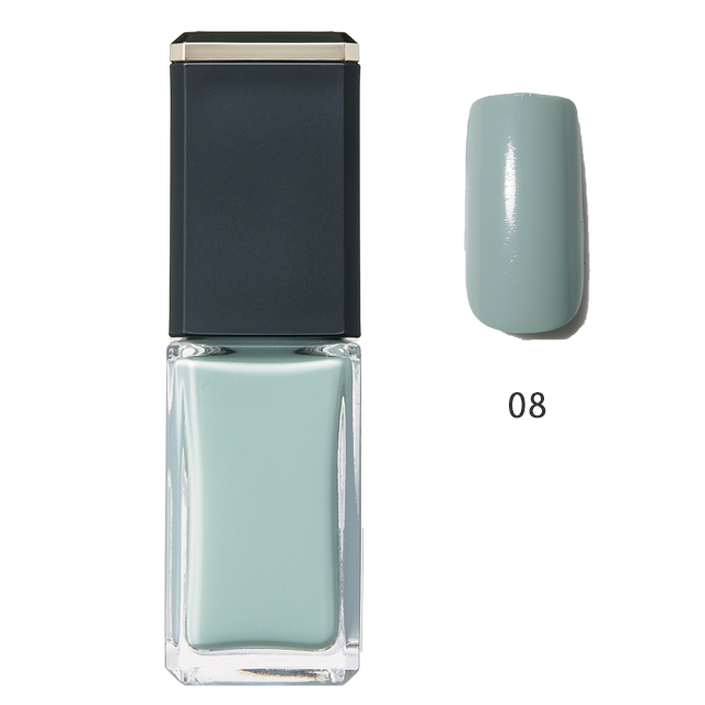 透き通る上品な艶めきカラーは、2度塗りで見たままに発色。08は夏らしいミントグリーン。