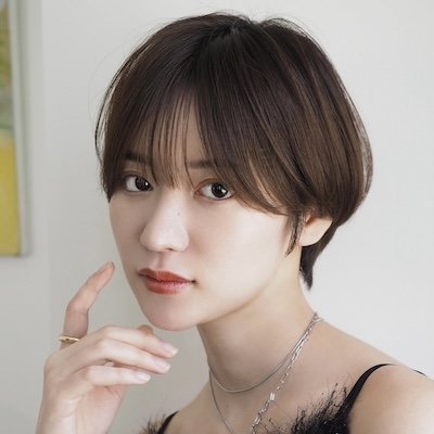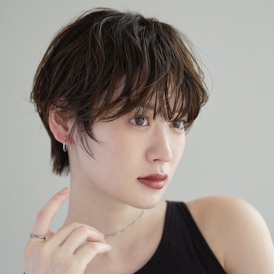 センターパートかつ、暗髪のショートヘアでも、モードに寄らず女性らしい柔らかさを演…