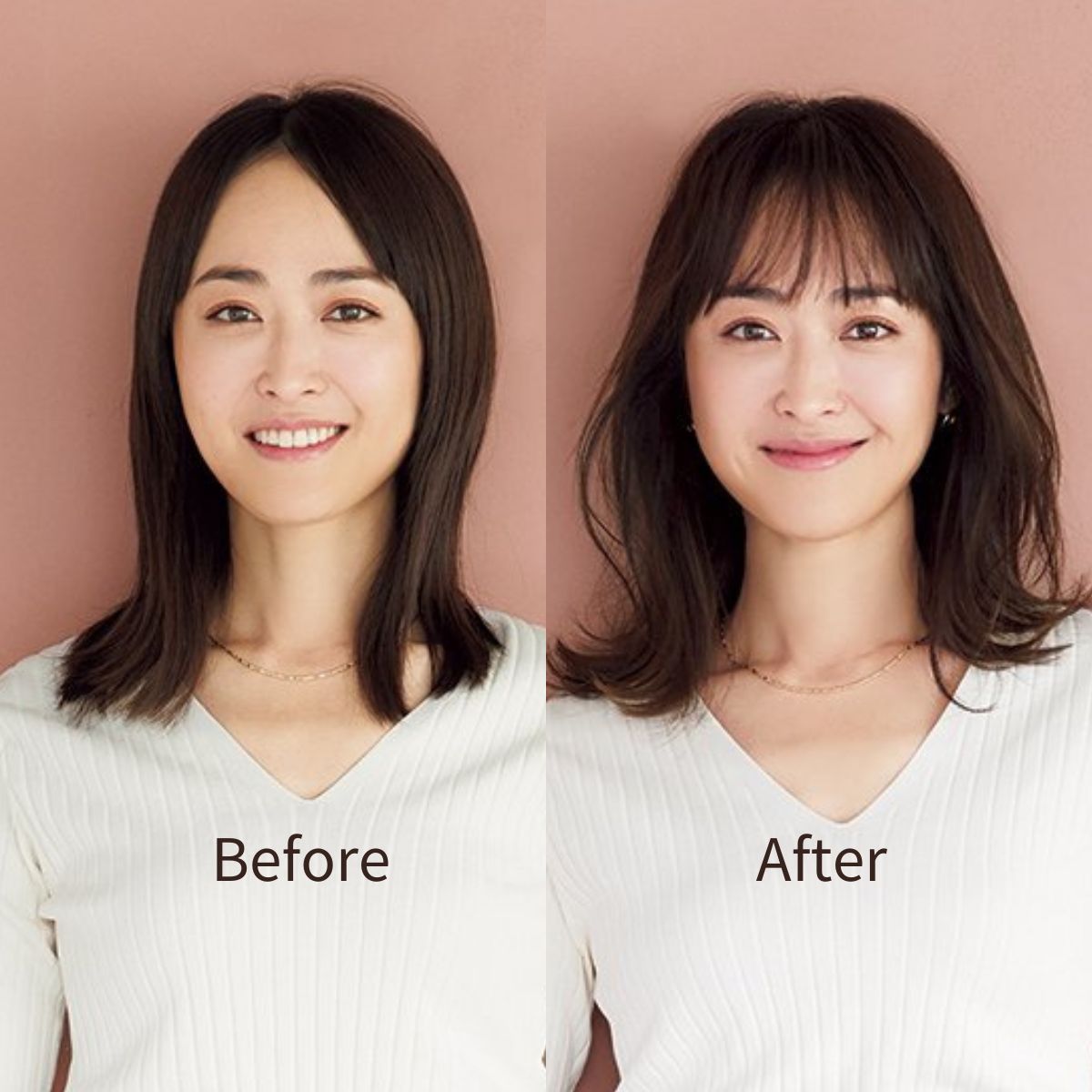 上の写真にご注目。劇的なまでの印象の違いを生み出したのは、ずばり髪のスタイリング…