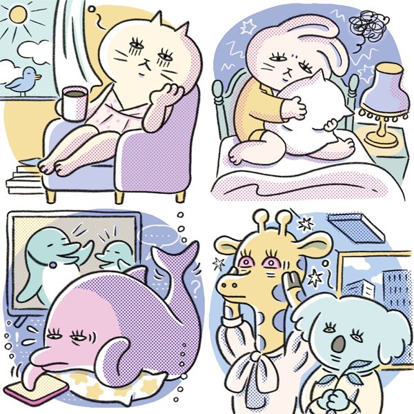 自覚のある人もない人も、一度自分の睡眠課題を知ることから始めよう! ウサギ、ネコ、コアラ、キリン、イルカ…該当する箇所が多い動物で、あなたの睡眠傾向をチェック!…