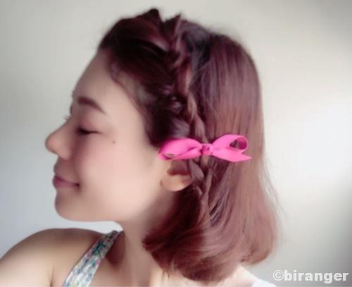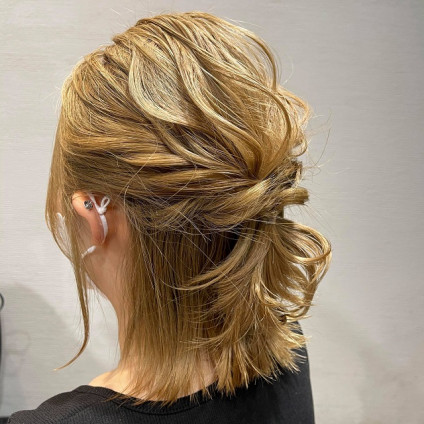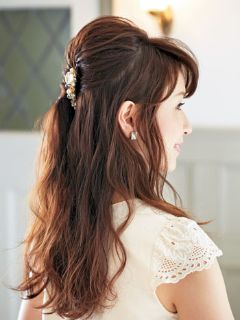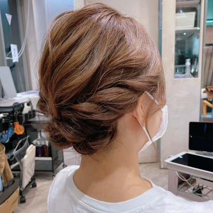 編み込みアップヘア×キラキラカチューシャでセレブ風に