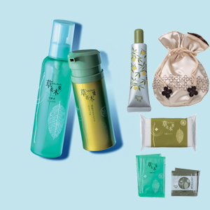 8種類の植物エキス、延命草(ヒキオコシ)、オウゴン、ボタン、ジオウ、テンチャ、よもぎ、はと麦(ヨクイニン)、ユキノシタと、美白効果のあるビタミンC、天然温泉水が…