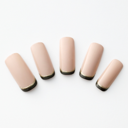 淡いピンクをベースにした逆フレンチネイル。フレンチ部分は2色のベージュを指ごとに…