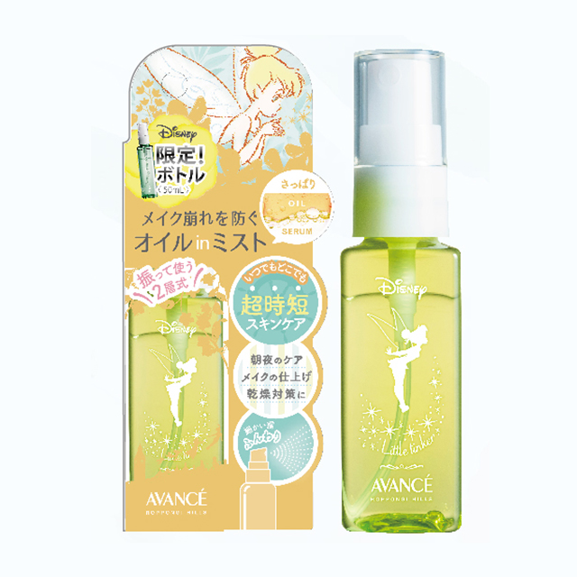 メイクの上からスプレーするだけで、メイクくずれやマスクへのメイク移りを防止する、アヴァンセの人気オイルインミスト。キュートなティンカー・ベルとのコラボパッケージ…