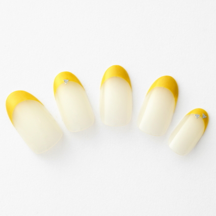 【注目のイエロー2色使い! “すっきり見え”の斜めフレンチネイル】 落ち着かない…