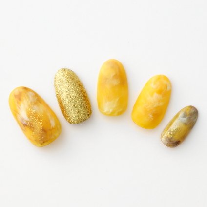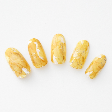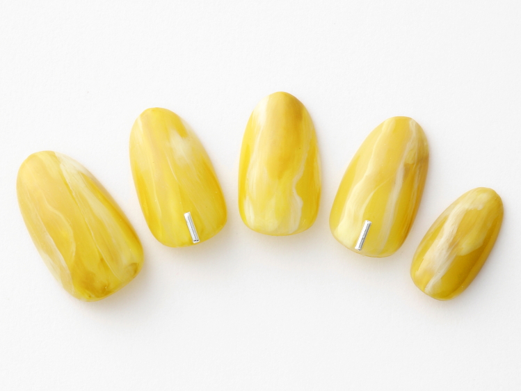 【旬のイエローを大人仕様に…落ち着きのあるイエローマーブルネイル】 まだまだ落ち…