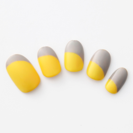 【イエロー×グレーでおしゃれ度UP! 洗練された印象の斜めフレンチ】 手探り状態…