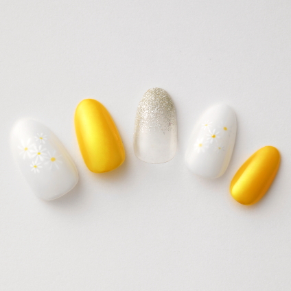 【ビタミンカラーで爽やかに…可憐なホワイト×イエローネイル】 今年は暑くなる予報…