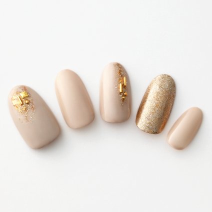 【ゴールドのアクセントで華やぐ…エレガントなスモーキーベージュネイル】 今月のネ…