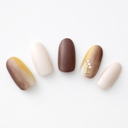 【ダークブラウンを優しげに…指が長くキレイに見える縦グラデネイル】 今月のネイル…