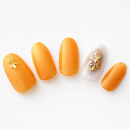 【夏の太陽を思わせる明るい輝きを…日差しに映えるミックスオレンジネイル】 例年と…