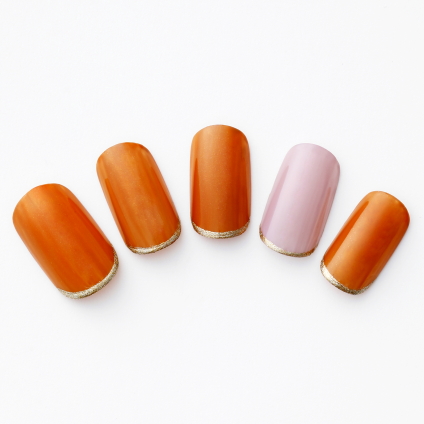 【ゴールドアートで品良く…手肌がキレイに見えるオレンジ系のツートンネイル】 緊急…