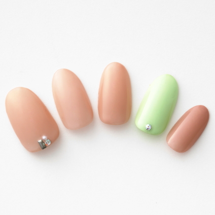 【新緑のようなミントグリーンを引き立たせる…シンプルさが際立つベージュネイル】…