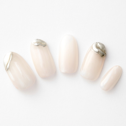 ヌーディーカラーにメタリックシルバーの逆フレンチを施した、女性らしさの中にもモー…
