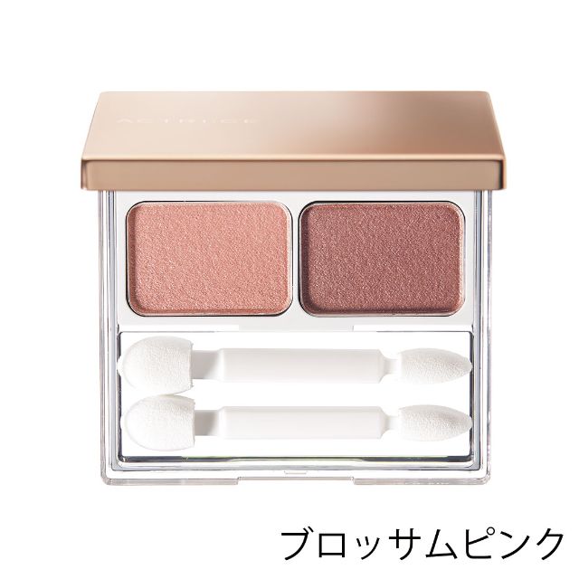 植物オイルなどがまぶたを保湿し、美発色をロングキープ。ブリックレッドは上品なレンガ色。シャイニーベージュはツヤ感が華やか。