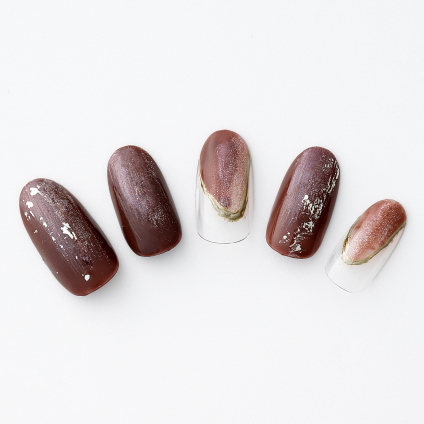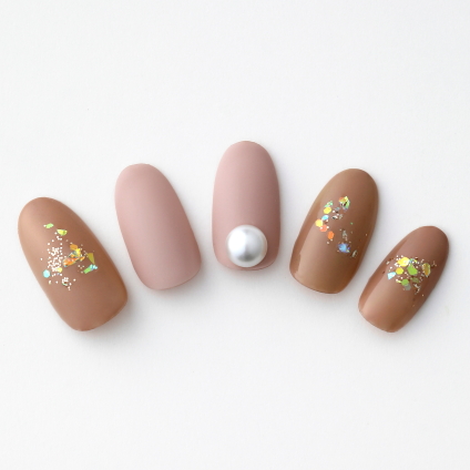 【ラメとパールの使い方がポイント! シャレ感高めなブラウンネイル】 不安が残る年…