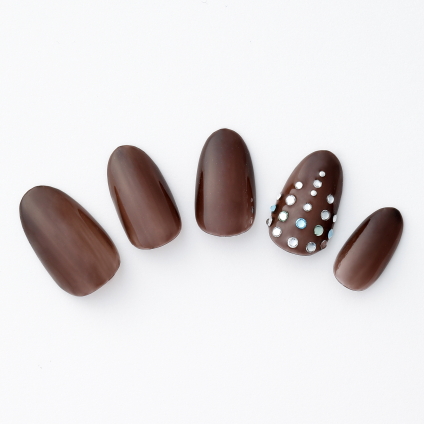 【ストーンのグラデーションで軽やかに♪ すっきりとしたビジューブラウンネイル】…
