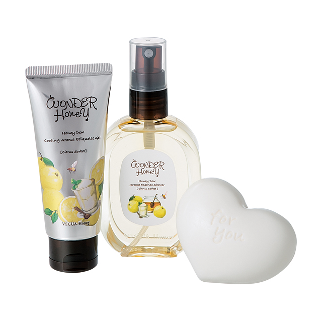 ボディミストは、初夏を感じるもぎたてグレープフルーツの香り。エチケットジェルは清涼感のある使い心地で、汗ばむ季節にぴったり♪ ハート形のソープを添…