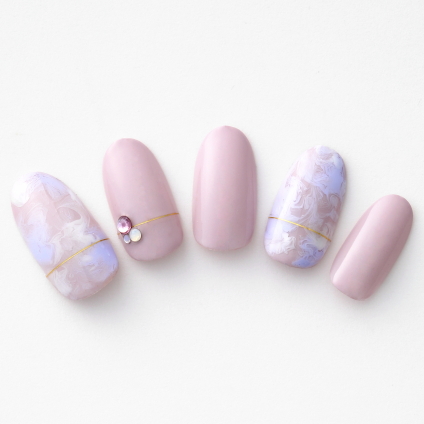 【イメージはいちごミルク♪ 大人かわいいゆるマーブルネイル】 今月のネイルのテー…