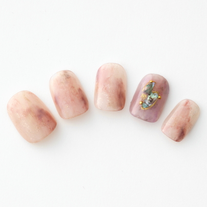 【柔らかな配色で大人な癒しを・・・ゆるマーブルを効かせたピンクベージュネイル】…