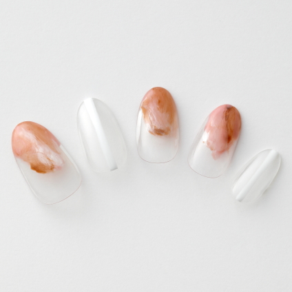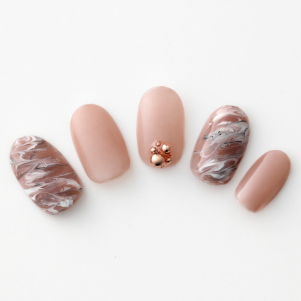【じんわりと温かみが広がるようなほっこり感♪ 柔らかな印象の血色マーブルネイル…