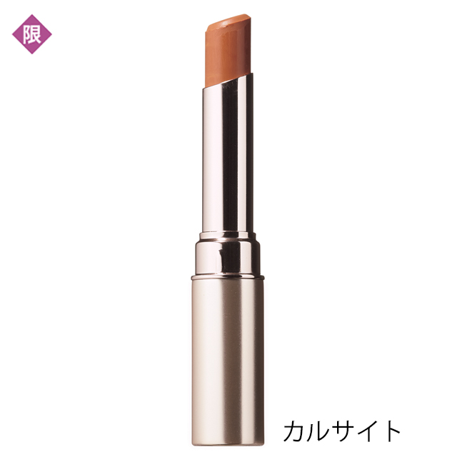 心地よい密着感と鮮やかな発色を実現。唇に優しい処方で石けんオフも可能。カルサイトはキャラメルのような濃厚イエローベージュ。