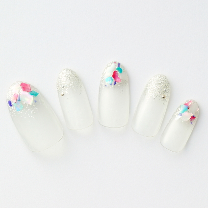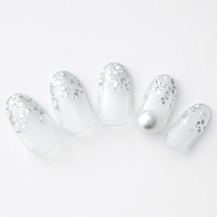 【2種類のグリッターで奏でる雫のようなラメグラデネイル】 気温とともに湿度も高く…
