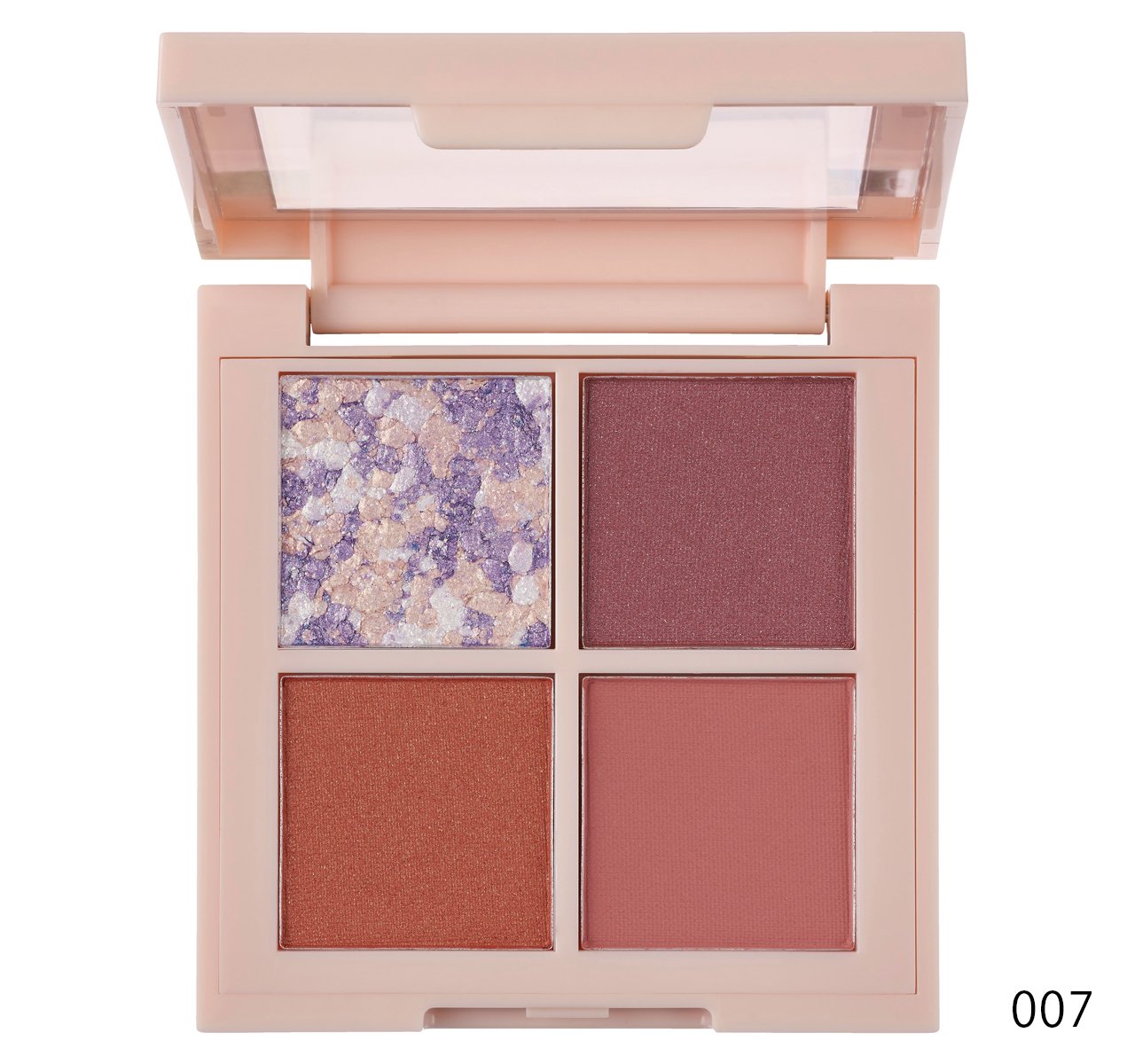 マット、サテン、パール、グリッターの4質感がイン。ふわっとまぶたに密着する透けカラーは、重ねても澄んだまま奥行きのある目元を実現。