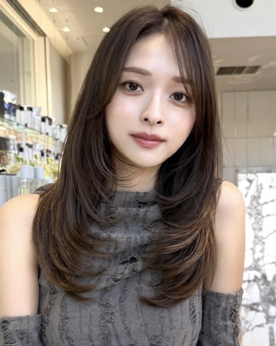 ロングでも柔らかい動きがあり、大人かわいい印象に。トレンドの韓国風スタイルはフォ…