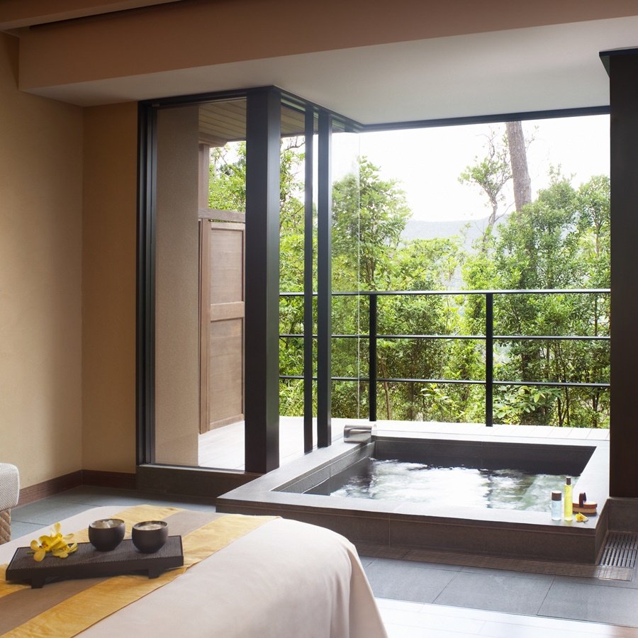 美しい山並みと水音を存分に感じながら、温泉露天風呂を楽しむ。客室でゆっくりとトリートメントを堪能したら、そのまままどろみの中へ…。そんな贅沢な時間をかなえてくれ…