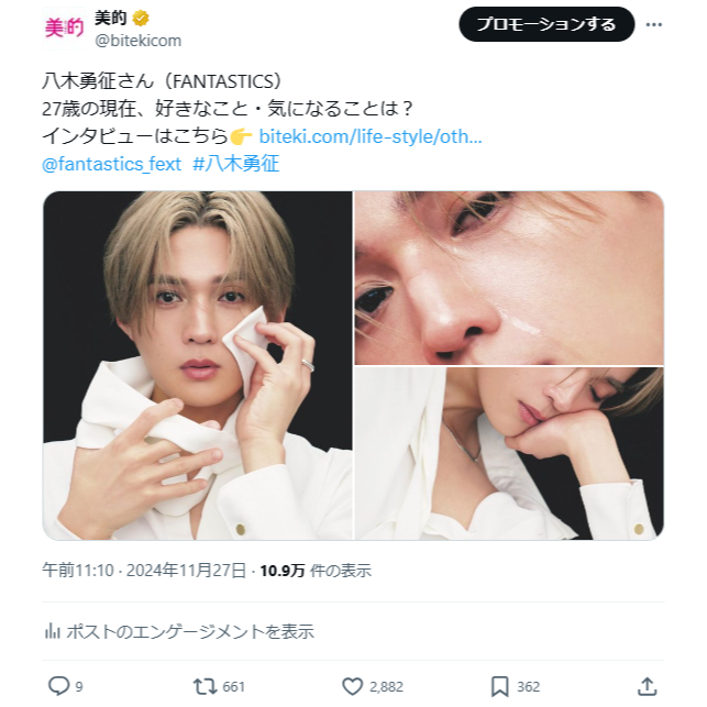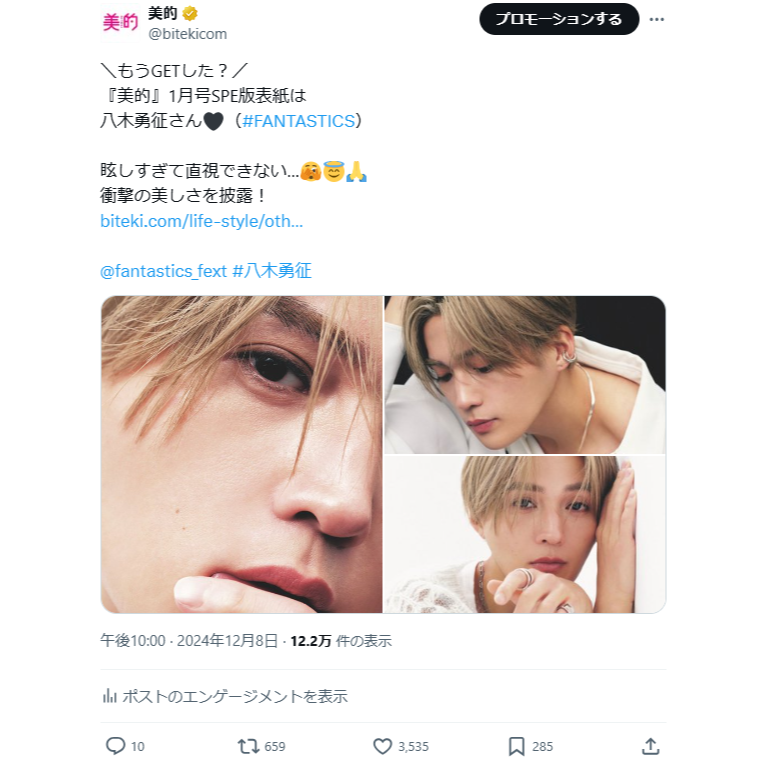 『美的』公式Xで話題になった情報をお届け!今週は『美的』1月号SPE版の表紙を飾った八木勇征さん、美容誌初登場の月城かなとさんの記事に注目が集まりました。それで…