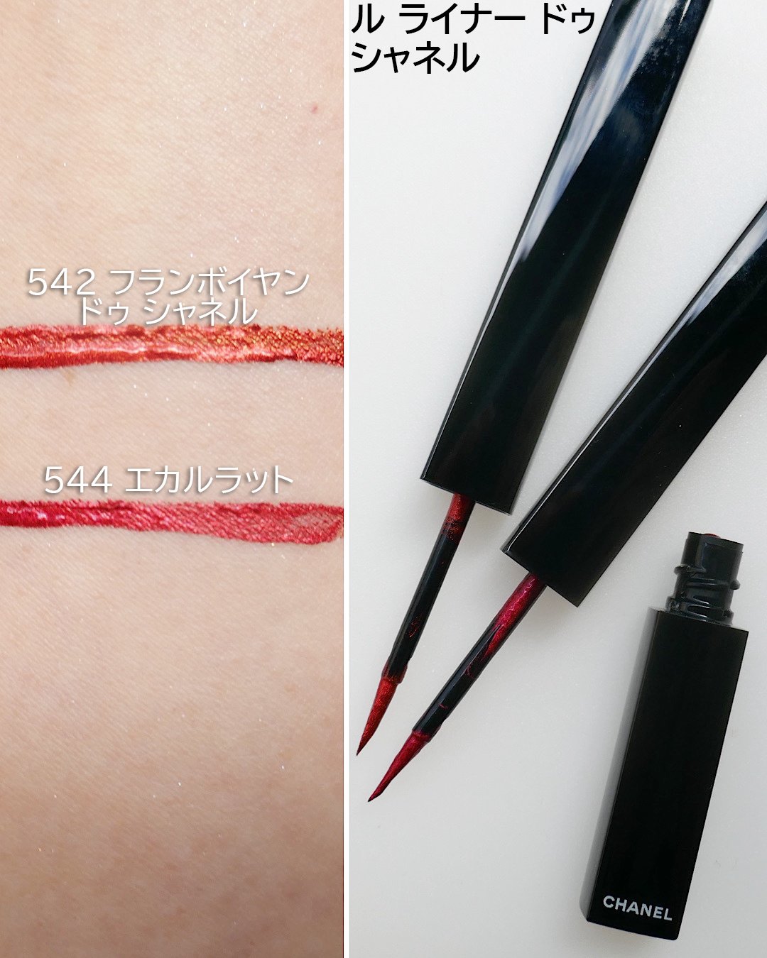 限定「レ キャトル オンブル」とあわせて使いたいリキッドアイライナーの限定新色。光沢のあるオレンジ系“542 フランボイヤン ドゥ シャネル”と、レッド“544 エカルラット”の2色が、まばゆいコントラストでドラマティックな目元を演出します。