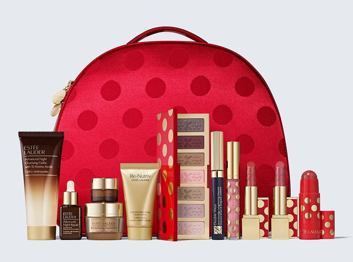 メイクアイテムはもちろん、メイク映えする肌に整えてくれるスキンケアまで入った超豪華なエスティ ローダーのセット。今年は、包みをあけた瞬間の煌めきや忘れられない喜びにインスパイアされたワクワク感のあるセットになっています。